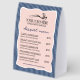 Let your patrons know of your dessert menu or specials with these tabletop tent menus with blue stripes and your menu inside a wavy frame. Personalize with a logo and your website. The menu features five items on either side, their prices, and a short text about each item. Perfect for your restaurant, café, bistro, bakery, or coffee shop.