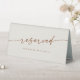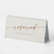 Cette enseigne de mariage crème bohème chic et bohème réservée est parfaite pour un mariage minimaliste. Le design bohème moderne en terre cuite neutre orangée et crème présente une calligraphie rustique simple au style unique mais classique. Le panneau s'imprime à l'avant et à l'arrière de la carte de tente de table. Personnalisez le panneau de table réservé avec qui il est réservé, si vous le souhaitez.