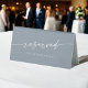Cette enseigne réservée aux mariages bleu foncé et chic boho est parfaite pour un mariage minimaliste. Le design moderne et bohème, bleu clair neutre, présente une calligraphie rustique simple, avec un style unique mais classique. Le panneau s'imprime à l'avant et à l'arrière de la carte de tente de table. Personnalisez le panneau de table réservé avec qui il est réservé, si vous le souhaitez.