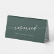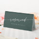 Cette enseigne réservée boho chic vert émeraude mariage est parfaite pour un mariage minimaliste. Le design bohème moderne et moderne de la forêt de chasseurs, sombre et maussade, se compose d'une calligraphie rustique simple au style unique mais classique. Le panneau s'imprime à l'avant et à l'arrière de la carte de tente de table. Personnalisez le panneau de table réservé avec qui il est réservé, si vous le souhaitez.