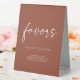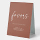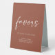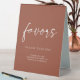 Boho Terracotta Brûlé Orange Mariage Faveurs Table Tente Signe. Le texte 'favors' n'est pas modifiable. Peut être utilisé pour les mariages, douches nuptiales, baby showers, etc.