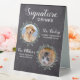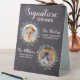 Signature Boissons de vos animaux de compagnie! Inclure votre meilleur chien, meilleur chat et tout animal de compagnie dans votre mariage avec son bar à boissons signature pour vos invités. Parfait pour les amoureux de les chiens, et un bar spécial chien sera un succès à votre mariage. Ardoise de tableau rustique avec feuilles d'eucalyptus. Customisez ce signe mariage animal de compagnie avec votre chien, chat, chiot ou chaton photos préférées, noms et boissons signature!. DROIT D'AUTEUR © 2020 Judy Burrows, Black Dog Art - Tous droits réservés. Rustique Signature Boissons Animaux Mariages Personnalisé 2 Photo Table Tente Signal