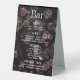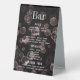 Un panneau de menu de bar mariage ou occasion spéciale avec des bulles de bokeh en or rose contre un arrière - plan noir.