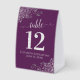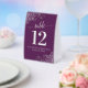 Plaque De Table Boucles d'argent Plum Purple Mariage Numéro de tab