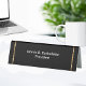 Bureau de direction de style enseigne de nom conçu avec deux éléments de design de couleur or qui ajoutent une touche de classe et un espace de nom que vous pouvez personnaliser avec le nom de vos employés ou de l'équipe de direction. Présenté sur un plastique de haute qualité adapté à un professionnel de bureau tel qu'un médecin, un directeur de bureau, un président ou un professionnel de la santé. Disponible en vrac ou à l'unité.