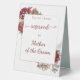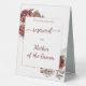 Assurez-vous que vos invités spéciaux ont leur place avec cet élégant panneau de table de la suite Mariage Floral Aquarelle Bourgogne. Conçue avec des flancs d'aquarelle romantique bordeaux et argentés, cette carte pliante indique "Ce siège est réservé" avec du texte personnalisable pour honorer vos VIP. Idéal pour réserver en style cérémonie ou réception. Entièrement modifiable pour les noms ou les messages