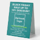 Panneau de table personnalisable avec Black Friday Sale, votre nom d'entreprise et d'autres informations. Panneau de tableau que vous pouvez utiliser comme matériel marketing pour attirer plus de clients. Customisez-le et affichez-le pour convaincre plus de clients d'acheter vos produits ou clients d'aimer vos services. Les couleurs design sont des textes blancs et jaunes-verts sur arrière - plan vert turquoise. Le contenu est Black Friday Sale, pourcentage de réduction que vous offrirez, dates de vente, votre nom d'entreprise, logo, adresse, numéro de téléphone, e-mail et site Web ou votre page de médias sociaux d'affaires. Veuillez vérifier l'apparence après avoir téléchargé le logo et tapé des textes. Si l'apparence vous plaît, vous pouvez passer votre commande maintenant. Si vous avez besoin de redimensionner et déplacer le logo et les textes pour s'adapter à ce panneau de table, s'il vous plaît changer dans l'outil de conception. Vous pouvez également modifier la couleur arrière - plan, la couleur de police et le style de police dans l'outil de conception. Je vous souhaite plus de ventes ce Vendredi Noir.