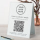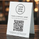 Drive instant engagement at your counter, table, or reception area with this custom QR code table tent sign. Designed with a clean white background, modern typography, and space for your logo and business name, this professional tabletop display makes it easy for customers to access your services, pricing, or website in seconds. The scannable QR code offers a seamless, contactless experience -- perfect for restaurants, cafés, salons, retail shops, medical and dental offices, hotels, events, and pop-ups. Simply enter your website or link, and Zazzle automatically generates the QR code for you, ensuring reliable scans and a polished presentation. Use it to share menus, service lists, booking pages, promotions, or important business information without printed handouts. Sturdy and freestanding, this table tent sign enhances your brand visibility while keeping your space uncluttered and on-trend.