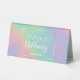 Couleurs arc-en-ciel ondulées avec un effet holographique faux, coloré et tendance. Le faux métal argenté affiche un cadre autour de votre Nom et Texte dans des lettres de police de caractères modernes en caractères blancs.