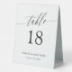Élégante tente de table en noir et blanc avec un délicat script de calligraphie. Ajoutez aussi vos noms et votre date de mariage !