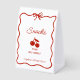 Ajoutez une touche douce et fantaisiste à votre table de snacks de shower de mariage avec ce panneau « She's the Cherry on Top ». Un lettrage rouge gras dans une police rétro ludique est mis en valeur, accentué par une paire de cerises joyeuses et un petit nœud pour plus de charme. Le fond blanc croquant garde le design propre, aéré et facile à lire sur toute la table. Parfait pour étiqueter les desserts, les friandises ou les bouchées salées, il peut également être personnalisé avec le nom de la mariée, la date de l'événement ou un court message. Coordonnée avec la collection « She's the Cherry on Top », cette enseigne apporte une finition amusante, élégante et sur le thème des cerises à votre célébration.