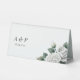 Elégante carte de lieu de mariage aux roses blanches. Il y a de l'espace pour le nom d'invité et le numéro de table à l'avant, et vos initiales et la date du mariage à l'arrière. Personnalisez avec vos détails mariages.