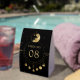 Elegant wedding table number featuring a beautiful illustration showing moon phases and modern typography.