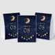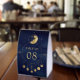 Elegant wedding table number featuring a beautiful illustration showing moon phases and modern typography.