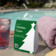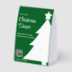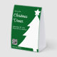 You can invite your restaurant's customers to your Christmas Dinner with this dark green and white paper table tent. A white Christmas tree is next to cursive script that can changed to your custom message (Shown: Christmas Dinner). Additional text can be edited to show important details such as the date, whether or not reservations are required, and a QR code that can be scanned for your special menu.