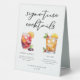 Cet après-midi rafraîchissant à la réception au bord de la piscine signature cocktails panneau de tente avec typographie noire simple au-dessus de 2 boissons et leurs ingrédients pour votre bar mariage. Un joli dessin de Sangria et Mai Tai d'été ajoute une touche cool à votre menu du bar. Complétez avec les noms du couple et la date de leur réception.