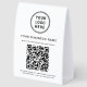 Faites la promotion de votre marque et facilitez les interactions avec vos clients grâce à ce présentoir de table en papier à code QR personnalisé, parfait pour les salons, les spas, les restaurants, les boutiques, les cabinets médicaux, les hôtels et les petites entreprises. Conçu pour afficher votre logo, le nom de votre entreprise et un code QR scannable, ce présentoir de table propre et moderne aide les invités ou les clients à consulter rapidement vos services, votre menu, vos tarifs ou votre lien de réservation en un seul scan. Imprimé sur du papier durable et abordable, c'est une option professionnelle et économique pour les comptoirs de réception, les comptoirs ou les présentoirs de salons professionnels. Le design minimaliste noir et blanc garantit que votre logo et votre code QR ressortent clairement, complétant ainsi n'importe quel style de marque ou décoration. Personnalisez facilement avec votre propre logo, adresse, numéro de téléphone,
