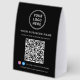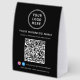 Donnez à votre entreprise une touche professionnelle et moderne avec ce présentoir de table personnalisé à code QR noir, conçu pour aider les clients à se connecter instantanément à votre marque. Parfait pour les salons, les spas, les cafés, les boutiques, les restaurants et les petites entreprises, cet affichage épuré noir et blanc permet aux clients de scanner facilement pour afficher les services, les tarifs, les menus ou les liens de réservation. Imprimé sur du papier de haute qualité et abordable, ce présentoir léger est idéal pour les comptoirs d'accueil, les comptoirs et les stands de salons professionnels. Ajoutez votre logo, le nom de votre entreprise, vos identifiants de médias sociaux Facebook et Instagram, ainsi que votre code QR pour créer un affichage cohérent et marqué qui stimule l'engagement en personne et en ligne.