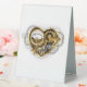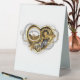 Coeur steampunk mécanique, volumétrique, avec manomètre, acier et or sur arrière - plan blanc. Style Steampunk.