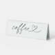 Our coffee acrylic table tent display sign features hand lettered typography adorned with a heart for a minimal and elegant way to display food at your wedding reception or event.