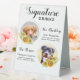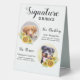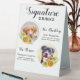 Signature Boissons de vos animaux de compagnie! Inclure votre meilleur chien, meilleur chat et tout animal de compagnie dans votre mariage avec son bar à boissons signature pour vos invités. Parfait pour les amoureux de les chiens, et un bar spécial chien sera un succès à votre mariage. Blanc simple mais élégant avec cadre fleuri de tournesol. Customisez ce signe mariage animal de compagnie avec votre chien, chat, chiot ou chaton photos préférées, noms et boissons signature!. DROIT D'AUTEUR © 2020 Judy Burrows, Black Dog Art - Tous droits réservés. Signature personnalisée Boissons Sunflower Pet Mariage Table Tente Signet