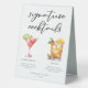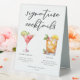 Ce panneau de tente de table à cocktails sophistiqué présente une typographie noire simple au-dessus de 2 de vos boissons préférées et de leurs ingrédients pour votre bar mariage côtier. Un dessin cosmopolite chic et Mai Tai ajoute une touche ludique à votre menu de bar. Complétez avec les noms du couple et la date de leur réception.