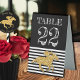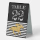 Des numéros de table en plastique avec un faux cheval de course en parties scintillant d'or sur des rayures noires et blanches en bas une solide zone noire en bas pour votre personnalisation personnalisée. REMARQUE : MODIFIEZ LE NUMÉRO DE TABLE, placez-le dans votre panier pour chaque numéro que vous voulez commander. CORRESPONDRE des articles dans notre magasin.