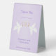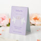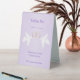 Wedding table number doves design. Customise this lilac coloured table number with your wedding details. Should you require any help with customising then contact us through the link on this page. Doves design lilac coloured personalised wedding table number