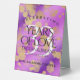 Ajoutez une touche spéciale supplémentaire aux célébrations du 33ème anniversaire du mariage améthyste avec ce panneau de table élégant ! Des lettres élégantes avec des confettis hexagonaux dorés sur un arrière - plan améthyste violet ajoutent une touche mémorable à cette occasion spéciale et à cette étape extraordinaire. Customisez avec les noms des couples, les dates du mariage et les messages de félicitations. Remarque : cette conception a été optimisée pour une utilisation verticale du portrait. Design © W.H. Sim. Voir plus sur zazzle.com/expressionsoccasions