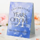 Ajoutez une touche spéciale supplémentaire aux célébrations du 51e anniversaire du mariage saphir avec ce panneau de table élégant ! Un lettrage élégant avec des confettis hexagonaux sur un arrière - plan bleu saphir ajoute une touche mémorable pour cette occasion spéciale et une étape extraordinaire. Customisez avec les noms des couples, les dates du mariage et les messages de félicitations. Remarque : cette conception a été optimisée pour une utilisation verticale du portrait. Design © W.H. Sim. Voir plus sur zazzle.com/expressionsoccasions
