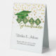 Cette élégante tente de table est dotée d'un bouclier vert et or et d'un casquette personnalisé avec votre année de graduation. Texte personnalisé "Voeux & Conseils" et instructions pour les invités. Utilisez le bouton "Personnaliser" pour customiser le produit.