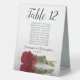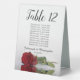 Ces panneaux de numéro de table de tente ne sont pas seulement beaux, ils incluent même une liste de noms pour les invités à chaque table, ce qui permet à vos invités de trouver facilement leur siège à votre réception de mariage. Le design est à la fois élégant et romantique avec une seule rose rouge couchée sur son côté réfléchissant dans l'eau avec des vagues et des ondulations. Le titre est en calligraphie de script en dentelle avec des chiffres en gras afin que vos invités puissent facilement trouver la bonne table. Il y a de la place pour les noms du couple et la date du mariage.
