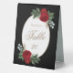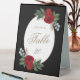 Belles vaporisations florales aquarelle... avec de magnifiques pivoines rouges, une verdure luxuriante, l'eucalyptus et le souffle du bébé... entourent un cadre ovale avec votre numéro de table en écriture typographique or. Les riches tons rouges et verts des fleurs mettent en valeur les élégants arrière - plans noirs, blancs et dorés. Ajoutez vos propres détails en suivant le lien "Personnaliser". Si vous désirez obtenir de l'aide, veuillez me contacter par courriel ou par courriel à Zazzle. susanmingaydesigns@gmail.com