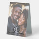 Add a personalized, elegant touch to your reception décor with this portrait-style photo table number stand template. Designed for weddings, engagements, couples showers, and anniversaries, this stylish display features a fully editable photo of the couple beneath two layers of soft, translucent overlays. These overlays ensure the black text with white drop shadow appears crisp, readable, and beautifully balanced against any photograph.
