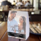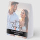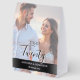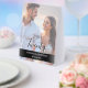 Introduce a refined touch of modern elegance to your wedding tables with this beautifully designed custom portrait-photo table number. Your chosen couple’s photo is softened beneath translucent, layered overlays, creating a clean contemporary look while ensuring every text element remains crisp and perfectly readable.