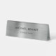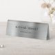 Élégant Argent gris métallique Nom d'entreprise Bureau Table Tente Signal. Customisez pleinement cette élégante plaque de table de bureau gris argenté de nom d'entreprise métallique avec votre nom et titre de position.