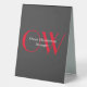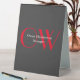 Plaque De Table Élégant Unique Gris Rouge Gras Texte Monogramme