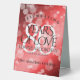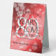 Ajoutez une touche spéciale aux célébrations du 80e anniversaire du mariage de rubis avec cette élégante tente de table ! Des lettres élégantes avec des confettis hexagonaux sur un arrière - plan rouge rubis ajoutent une touche mémorable à cette occasion spéciale et à cette étape extraordinaire. Customisez avec les noms des couples, les dates du mariage et les messages de félicitations. Remarque : cette conception a été optimisée pour une utilisation verticale du portrait. Design © W.H. Sim. Voir plus sur zazzle.com/expressionsoccasions