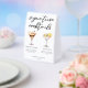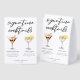 This chic signature cocktails list features simple black typography above 2 drinks and their ingredients for your wedding bar. An espresso martini and lemon drop drawing add a cool flair to your drinks menu table tent sign. Complete with the couple's names and date for their reception.