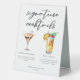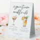 Cette liste de cocktails chic et signature propose une typographie noire simple au-dessus de 2 boissons et leurs ingrédients pour votre bar mariage. Un expresso martini et un dessin Pina Colada ajoutent une touche cool à votre panneau de tente du menu du bar. Complétez avec les noms du couple et la date de leur réception.