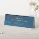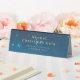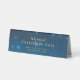 Panneau de fête de Noël avec des étoiles. Grand panneau de tente pour fêtes de Noël, galas, événements d'affaires, et plus encore. Couleurs bleu et or. Customisez le texte. Utilisez le modèle pour créer votre propre signature de partie de table.