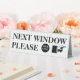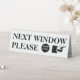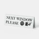 Idéal pour toute chaîne d'affaires ou de supermarchés qui sert les clients en utilisant des guichets. Un arrière - plan blanc a une police noire en gras dessus qui dit "Fenêtre suivante s'il vous plaît" avec la silhouette d'une main pointant un doigt dans la direction à suivre. Personnalisez le libellé de votre choix et n'hésitez pas à ajouter une couleur arrière - plan et à modifier la couleur, le style et la taille de la police en fonction de vos besoins professionnels.