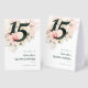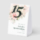 Joli carton de table moderne et élégant pour une fête d'anniversaire de Quinceañera Mis Quince Anos. Fleurs rustiques et feuillage de rose rose. Le modèle peut être facilement modifié et le texte remplacé par vos propres informations en cliquant sur le bouton "Personnaliser". Pour une personnalisation plus poussée, veuillez cliquer sur le lien "Personnaliser davantage" et utiliser notre outil de conception pour modifier ce modèle.