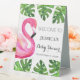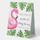 Flamant rose, feuilles tropicaux, aquarelle naturelle signe d'accueil. Calligraphie simple et élégante, panneau de table de Baby shower photo. Personnalisez-le avec vos détails.