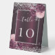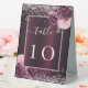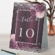 Un profond arrière - plan à dégradé bordeaux, décoré de faux confettis argentés et de fleurs roses et burgudny. Texte blanc. Personnalisez et ajoutez vos numéros de table. Ajoutez vos numéros un par un.