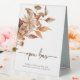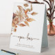 Pancarte de table de tente Fleurs d'automne. Ce panneau élégant et rustique de bar ouvert de mariage présente des feuilles de couleur orange brûlé et terracotta peintes à la main à l'aquarelle, des dahlias crème et beige, et de belles roses de couleur rouille parfaites pour un mariage d'automne !