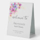 Rendez votre mariage amusant et lumineux avec ce panneau de tente de table de bienvenue aux fleurs aquarelles et à la verdure dorée Bohème qui fait partie d'une collection amusante appelée 'Aquarelle et Or'. Pour personnaliser ce design, veuillez cliquer sur le lien "Personnaliser ce modèle". Articles assortis disponibles.