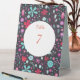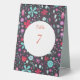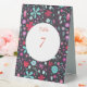 Aquarelle botanique moderne de fleurs sauvages bleu aqua et violet sur un arrière - plan foncé. Art original de Nic Squirrell. Coordonner la carte de numéro de table recto verso avec le texte qui peut être modifié en fonction de votre célébration.
