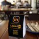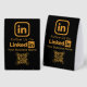 Enhance your business networking with this sleek and modern 'Follow Us On LinkedIn' table tent sign. Featuring a prominent LinkedIn logo and a scannable QR code, this sign makes it effortless for potential clients and connections to find and follow your professional profile. The elegant black and gold design adds a touch of sophistication to any business setting, from trade shows and conferences to restaurants and corporate events. Simply add your business name and watch your LinkedIn connections grow. Perfect for any professional looking to expand their reach and build valuable relationships.