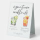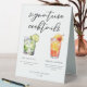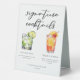 Cet après-midi rafraîchissant signature cocktails panneau de tente avec une simple typographie noire au-dessus de 2 boissons et leurs ingrédients pour votre bar mariage. Un joli dessin Gin & Tonic et Tequila Sunrise ajoutent un côté cool à votre menu de bar. Complétez avec les noms du couple et la date de leur réception.